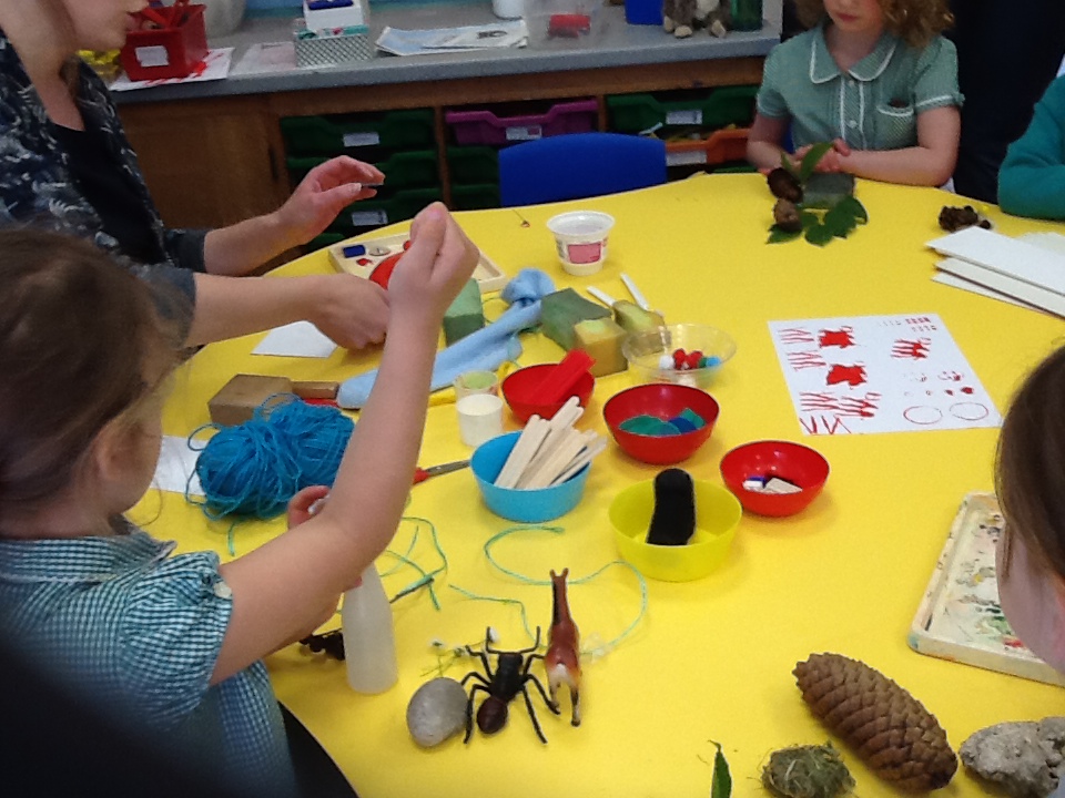 At Woodland Schools, they were making buildings from Bollington out of sticks and leaves.