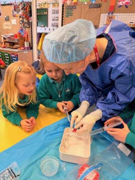 Tuesday - Reception had a visit from a nurse where the children learned about how to keep healthy and germs. They even got to dress up a teddy bear in a gown, and use special equipment.