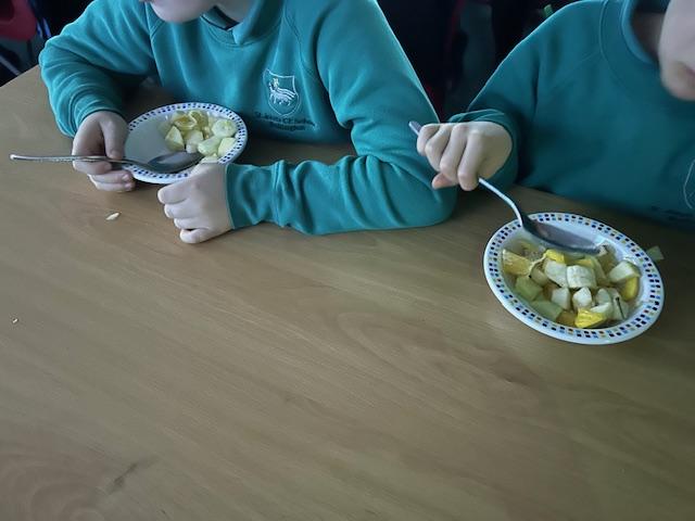 Class 3 had a lot of fun peeling and chopping to make a Friday fruit salad. They also learned so much about safe food preparation, independence and the importance of healthy eating habits.